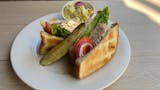 Indulge in our classic Corned Beef Sandwich, made with tender corned beef stacked high on rye bread. Served with a side of crisp pickle spears. A satisfying lunchtime favorite!