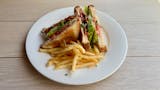 Our classic club sandwich features layers of turkey, bacon, lettuce, tomato, and mayo on toasted bread. Served with a side of crispy fries or fresh salad. A satisfying and delicious choice for lunch or dinner.